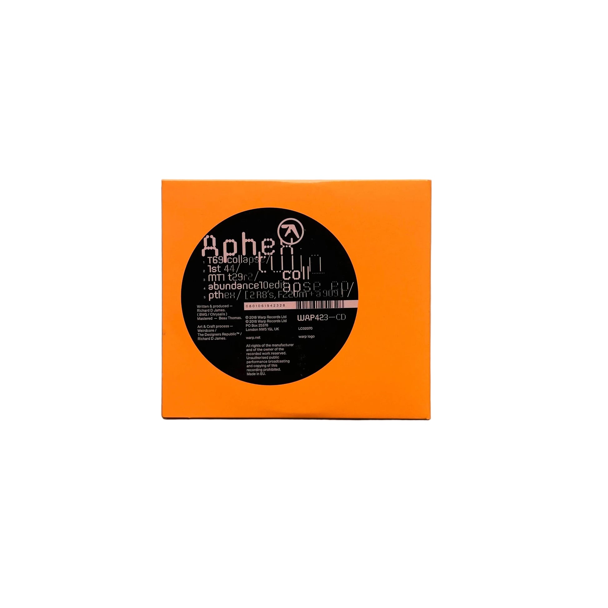 Aphex Twin Collapse EP CD released in 2018 on Warp Records. Features five tracks showcasing Richard D. James’ complex rhythmic programming and modern experimental electronic production. Packaged in the distinctive orange Warp sleeve with printed disc artwork.