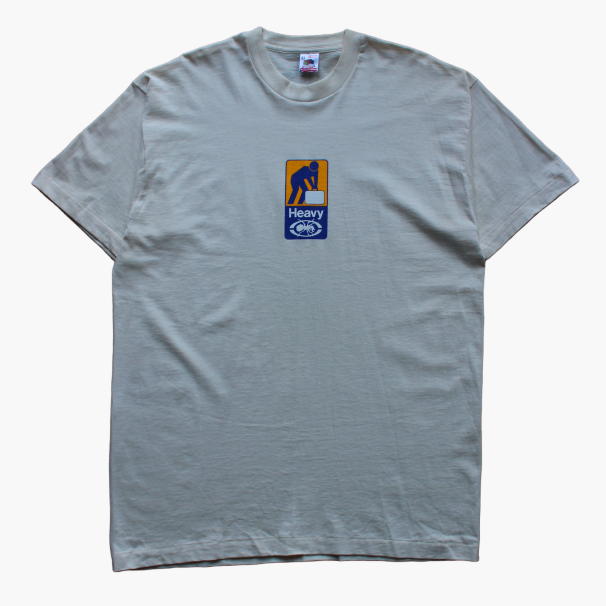 Late 90s The Prodigy “Heavy” Tee from the Fat of the Land Era. With a front graphic taken from a rave flyer, featuring “HEAVY” text and the classic ant logo.